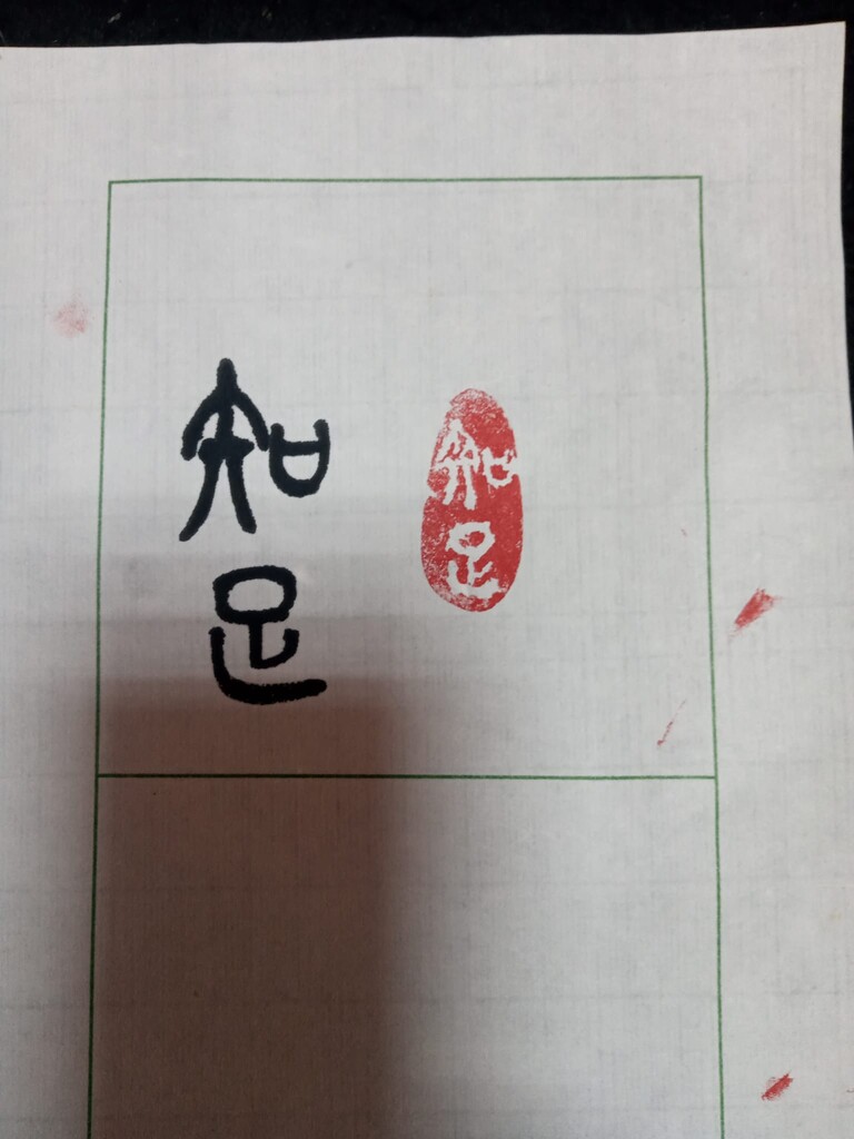 另外一顆是知足 , 這一顆刻得比較沒那麼好 。 知足常樂