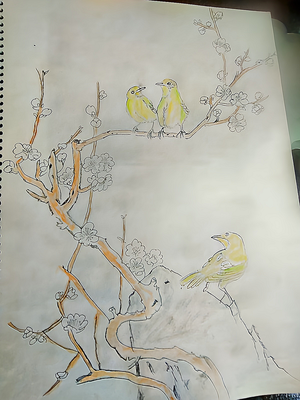【花鳥畫】 梅花繡眼