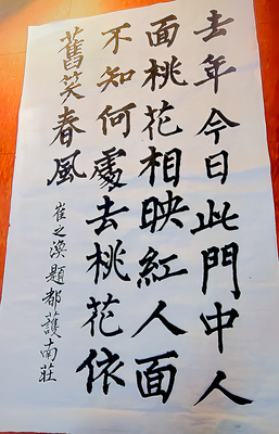 去年今日此門中 ,人面桃花相映紅 ,人面不知何處去 ,桃花依舊笑春風