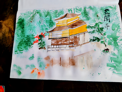 最近自學水彩 , 想來畫一個金閣寺試試 ,但沒有畫得特別好 ,有畫出了寺廟的一點點倒影 ,湖面掌握度沒那麼夠 ..
