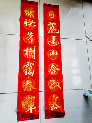 上個禮拜上筆墨莊購買金墨汁 (水性) , 寫點跟平常不太一樣的春聯 ~