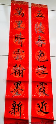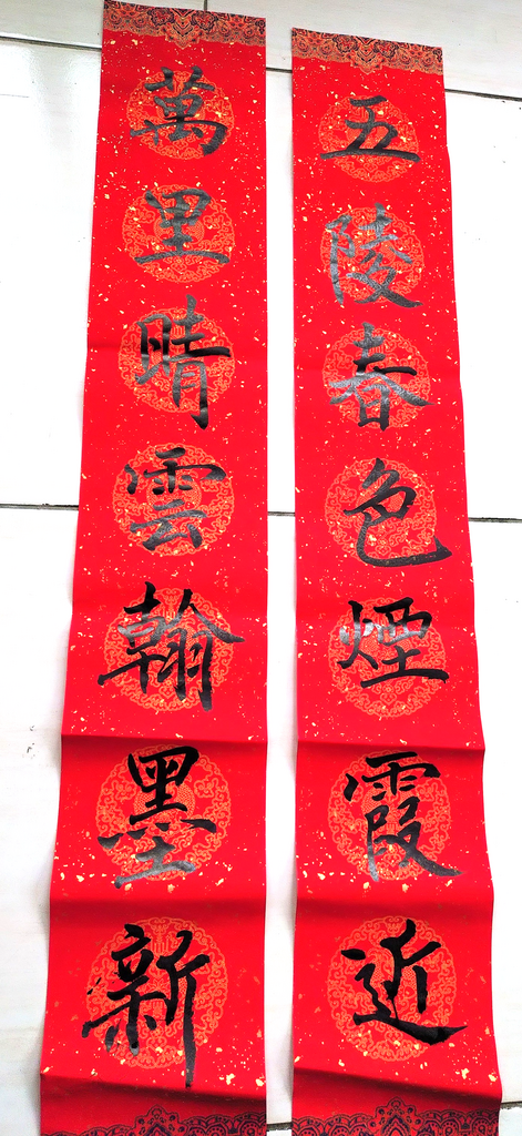 今天天氣稍感寒冷 , 寫一幅春聯以後精神大振 , 祝福大家 ~