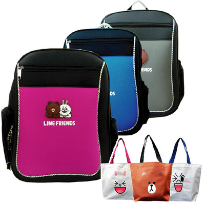 【LINE FRIENDS】MIT元氣護脊書背包+造型萬用袋(熊大/饅頭人/兔兔_LI3)