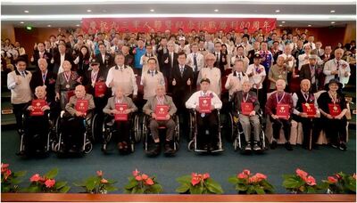 退輔會舉辦紀念活動及獎章頒贈典禮,由主委嚴德發親自主持,表揚對退役官兵有傑出貢獻的個人與團體。(圖/讀者提供)本次典禮共頒發「榮光專業獎章」予4個法人與公益團體、16位退役官兵代表。獲獎單位包括愛爾麗集團、財團法人寶佳公益慈善基金會、新昌營造有限公司等。