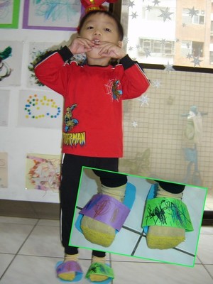 今天~~原本想要玩其他的東西的,不過突然發現材料準備不足.突然想到以前國小上美勞課的時候,有用過彩色紙做的鞋子...