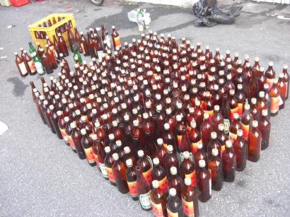 這些酒瓶都是這位大叔喝出來的