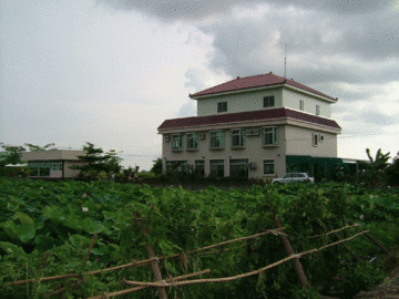 可以看見水田裡的荷花苗 和老板精心設計的庭園