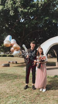 除了準備浪漫的氣球之外,男方還特別準備了能夠永久保存這一刻回憶的乾燥花束。
