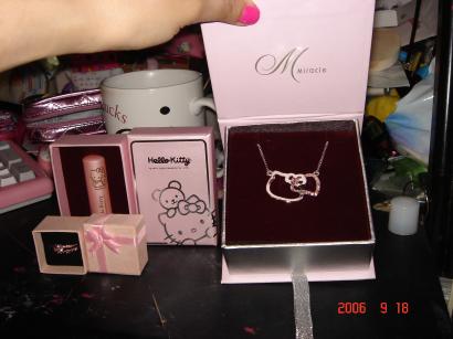 09/17那天除ㄌ告白木板~~還有這些可愛ㄉ禮物喔~~KITTYㄉ項鍊跟KITTYㄉ圖章~~還有一ㄍ戒指都是我最喜歡ㄉ粉紅色ㄟ~~印章我已經拿去科上我ㄉ名字拿來當開戶使用ㄌ喔~~呵呵