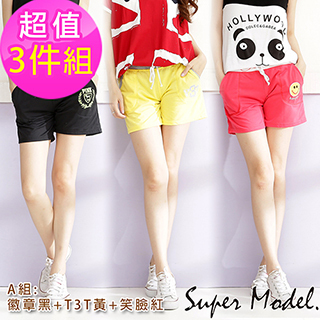 推薦momo流行服飾【名模衣櫃中大尺碼】夾-輕鬆穿搭運動短褲3件組(共4組可選擇M-XXL)