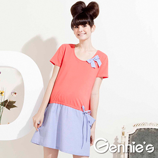 推薦momo流行服飾【Gennies奇妮】棉質蝴蝶結口袋假二件春夏孕婦洋裝(G1319)