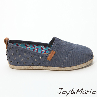 推薦momo熱銷商品【JOY&MARIO】鉚釘帆布麻底膠鞋(女鞋 藍 01038W Navy)