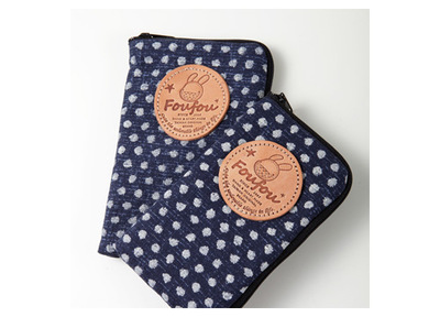 Zakka雜貨網: Foufou手工牛皮標手機袋-丹寧點點(大)