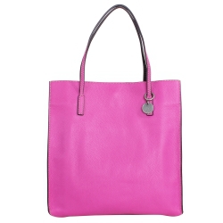 RABEANCO 牛皮革吸釦直立式手提包(桃)