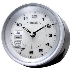SEIKO 精工時光轉輪靜音鬧鐘(白色) 日本精工原廠機芯 側邊鬧鈴設定 5分鐘鬧鈴自動停止功能 超亮夜光指針/時標 滑動靜音秒針不吵嚷