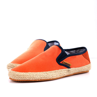 2014年將是慵懶樂活時尚的開始,設計出百搭的休閒懶人鞋款,巧妙以大片斜紋布為主軸,邊緣採用撞色的包邊設計,加上內裡條紋布的拼接與領口鬆緊帶的設計,結合復古麻繩大底的搭配,打造出慢活潮流的新風貌,別具與眾不同的流行風尚。