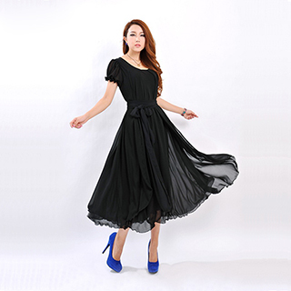 momo,momo購物台,momo購物網>【Jisen】香柔秋波雅緻繫腰長洋裝(L)