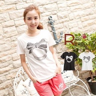 momo,momo購物台,momo購物網>【S-7L熊衣褲語】蝴蝶結戒指燙銀粉印圖短袖圓領棉T T164(白、黑S-2L)
