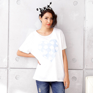 momo,momo購物台,momo購物網>【現貨 IKODE】愛心造型寬版短袖上衣(白、黃)