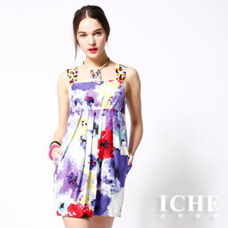 【ICHE 衣哲】滿版馬賽克高腰洋裝(亮彩好漾系列)商品訊息描述: