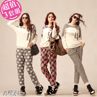 【名模天后】型-俏麗拼接套裝3套組(M-XL)