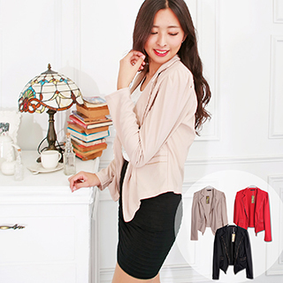 momo購物台,momo購物網:【2ndskin】假拉鍊翻領開襟外套(黑-杏-棗紅)