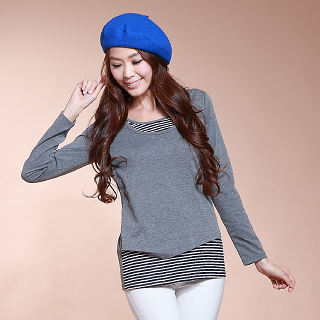 【HANEL】假兩件T恤棉質上衣(灰)那裡買