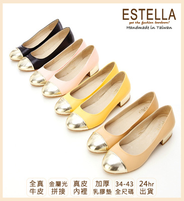 momo,momo購物台,momo購物網>【ESTELLA】全真牛皮金屬拼接低跟鞋(黃) ★★★