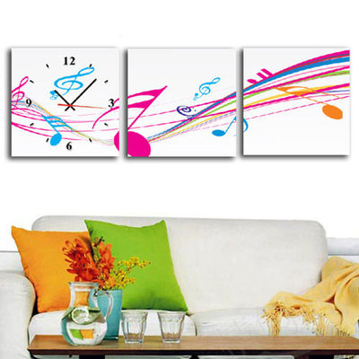 商品訊息描述: 【TIME ART】靜音機芯三聯式時鐘 無框畫鐘 二畫一鐘掛鐘? 30*30*2.5cm? S3-413