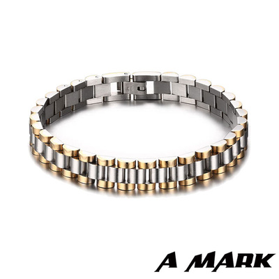 【9甘心】【A MARK】個性間金色錶鍊造型鈦鋼手環 男女款情侶對飾 情人節 生日禮物