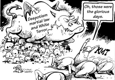 "獨裁戒嚴及白色恐怖"      KMT: "噢,那些光榮的日子。"
