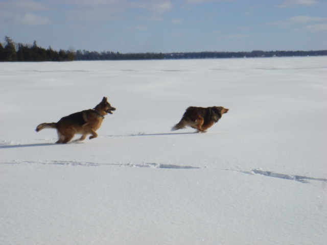 途經一個積雪的冰湖,毛小孩立刻當草原去跑跑。