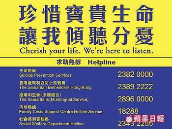 老實說在這一片「珍惜生命」聲中,我只愈發覺得吵耳。為什麼有這麼多人要「燒雞翼走雞翼」呢?報紙告訴我們,噢,這個爛賭負債,那個情場失意,這個火燒連環卡,那個老公包二奶,這個負資產,那個壓力大.....「珍惜生命」的背後是不知所措的精神亢奮,還是真的有所尋覓?噢,我們病了!我們的社會有病!這是我們所有人的問題!好像沒有,更多的聲音是自以為站在上帝身旁的天使,告知無知的世人:「你們不應該這樣,其實還可以這樣這樣,這樣過後你們就會後悔之前為什麼想那樣。」「廢話」英文縮寫是「BS」。真的有人那麼關心「生命意義」的話,我們今天的問題還會存在嗎?