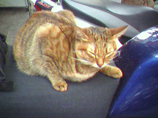 PIC 這隻貓躺在人家的機車上面睡覺 整個超舒服的感覺 超可愛