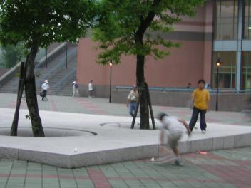 那天在新體前看到兩個小孩子在打羽毛球,想起國小時的我,拿著略矮於自己的羽球拍奔跑追逐著任何角度的球…已成憶。