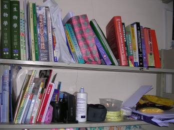 上排最左邊的是有機化學的解答,隔壁那本是有機課本,之所以放那麼左邊是因為早上睡醒突然想到一題有點怪的題目,於是便翻出來看看,果然,因為自己粗心又掉了好多分,感覺好哀傷…