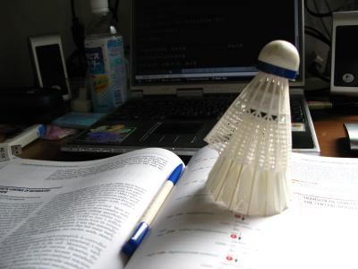 凌晨三點回到房間,坐在書桌前發呆,小腿又開始跟我抗議,我是為了一個星期後的公衛盃在努力,還是為了某些人而努力,連我自己都搞不清楚自己的動機,其實我好害怕我打不贏北醫跟高醫的一單,我從大一就好希望自己能打單打,實際站上比賽場之後,我才發現,那種感覺好令人畏懼,我害怕那種接不到切球的感覺、被中場跳殺的感覺、被假動作騙到的感覺,還記得上一次台大盃輸掉混雙的難過,雖然大家都說沒關係,不要緊,可是在那當下我真的覺得所謂盡力就好根本就是屁話,結果輸了,一切就都沒有了。