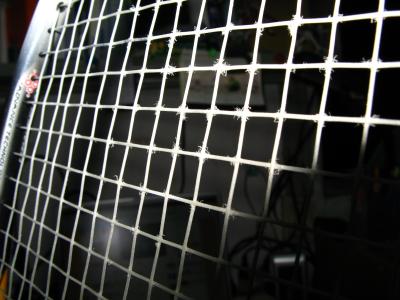 拍線起毛了,明天要把它剪斷換掉,不希望練球練到一半要換拍。