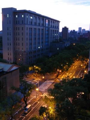 低頭寫著寫著,忽然發現因為開冷氣而緊閉著的窗戶外頭透出一團橘紅色的光,興奮的拿著相機跑到外頭的窗戶旁拍照,這種明暗對比很明顯的景物真的很難拍,對焦點放哪都很奇怪...,收起計算機,時間恰好是凌晨六點鐘,迅速的把程式碼轉貼到報告上,接著把最後兩題自由發揮的題目完成、排版,趕在和祥哥、楊念念約好要吃早餐的時間前修改完成,結束一夜折騰。
