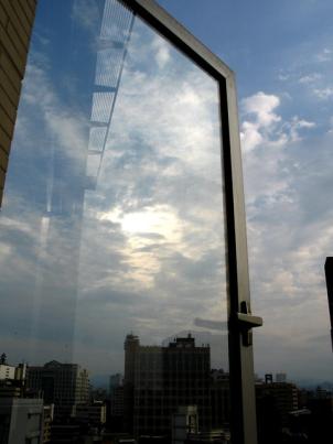 突然飛進窗子的鳥讓我差點沒從位子上跳起來,但也因而徹底擺脫周公的挽留,看著空景,一朵雲也沒有,像極了飛機上所看到的顏色,只是都是我一個人看到罷了。
