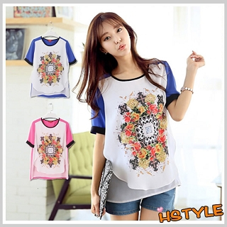 momo,momo購物台,momo購物網>【創翊韓都】雪紡上衣-拼接顯瘦短袖雪紡衫NF3118(現貨+預購)