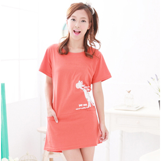 momo購物台,momo購物網:【S-7L熊衣褲語】長頸鹿貼圖雙口袋長上衣-洋裝D214(橘、藍M-XL)