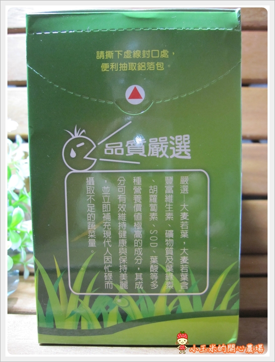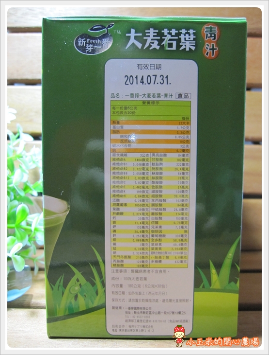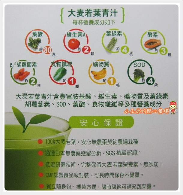 1. 100%大麥若葉;安心無農藥契約農場栽種,每日新鮮採收。