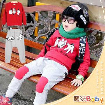 魔法Baby ~韓版猜拳手套款套裝(紅衣/灰褲)~套裝~男女童裝~時尚設計童裝~k24272
