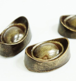 象徵財運的元寶,以64%黑巧克力包覆酸甜蔓越莓,巧克力風味濃厚帶蔓越莓甘甜味