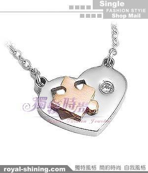 獨領時尚-愛心拼圖白鋼項鍊-玫瑰金