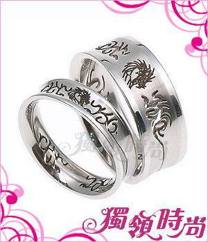 西德鋼材質,為永不變形,不退色,不過敏,因為它很『硬』,為最適合當戒指的材質,縷空刻紋設計,造型獨特,另有女款可搭配對戒
