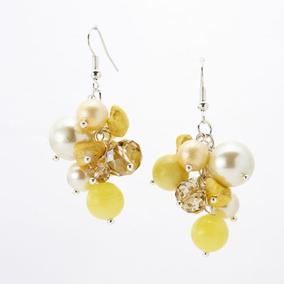 VogueBeau​ty沃可飾品-甜美日系黃彩石白珠耳環