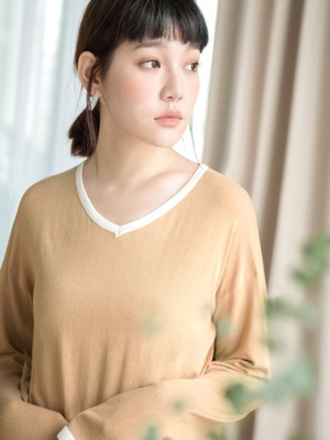 【發燒好康】線條滾邊v領針織上衣 知名商品