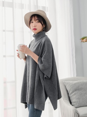 【便宜團購】高領細針織純色寬版斗篷毛衣 精選優惠